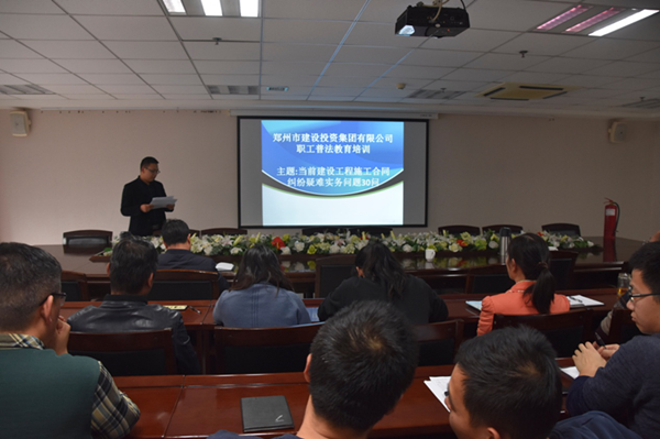 11月30日下午,根据《郑州市人民政府国有资产监督管理委员会关于印发郑州市国资系统2018年“12·4”国家宪法日集中法治宣传活动方案的通知》要求,为弘扬宪法精神,建设法治郑州,集团公司在25楼会议室开展了《建设工程施工合同纠纷疑难实务问题》解读培训活动。本次教育培训活动为视频培训,培训课件主讲人为袁华之律师,集团公司80多名员工参加本次活动。